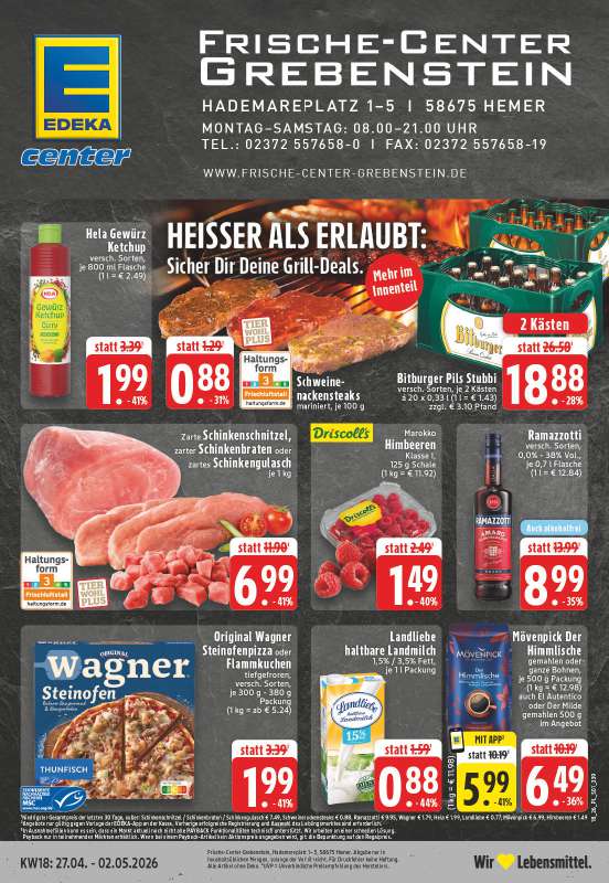 Angebote Die Angebote der Woche sind gültig vom 20.04. bis zum 25.04.2026. Bild zum Vergrößern anklicken oder hier herunterladen PDF-Download Produktkategorien Alle Angebote KNÜLLER Fleisch & Wurst Molkerei & Käse Obst & Gemüse Getränke Drogerie Grundnahrung Knabbern & Naschen Tiefkühl Non-Food Sonstiges Haus & Heim Bekleidung Tiernahrung 0. 44 Katzenmilch ab der 6. Woche, 200 ml Packung (1 l = € 2.20) 2. 49 Saftige Happen Hundenahrung Komplett-Mahlzeit mit Rind und Karotten, 1,5 kg Beutel (1 kg = € 1.66) 0. 69 Feine Mahlzeit Hundenassfutter versch. Sorten, je 400 g Dose (1 kg = € 1.73)